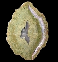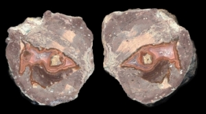 As a matter of fact, yonic symbols are not exactly rare in thundereggs if you look for them – no doubt thanks to the splits and opening up of the rock that occurs. However, it would be hard to imagine a more direct naturally generated fertility symbol than this somber thunderegg.