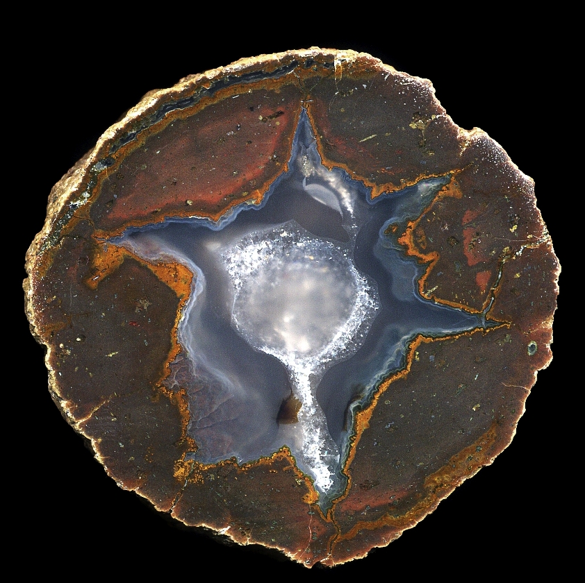 Technically this may be called a 'bad' cut, but I really love the result. Two very different halves, one with what looks like an undersea volcano breaking the surface and one with a wonderful swirly ghostly figure. Absolutely beautiful!